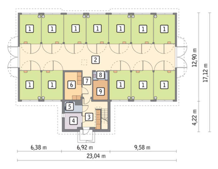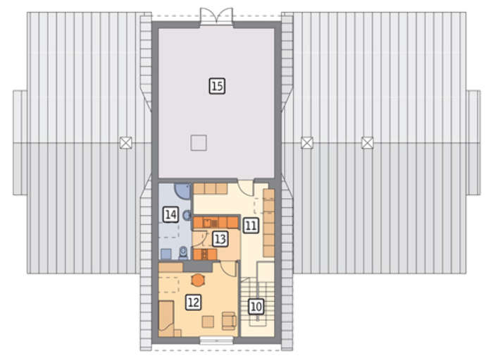 Проект содержит три раздела – АрхитектурныйКонструктивный и Инженерный: водоснабжение, отопление, вентиляция, канализация, электроснабжение (приобретается за дополнительную плату) + Пояснительная записка.