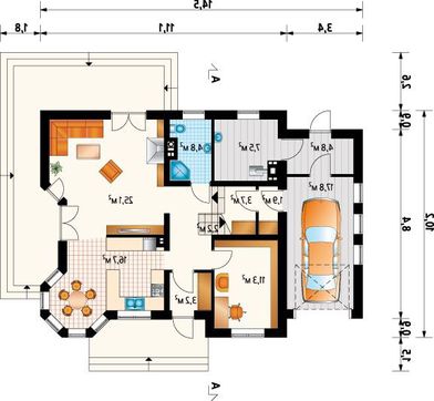 Проект содержит три раздела – Архитектурный, Конструктивный и Инженерный: водоснабжение, отопление, вентиляция, канализация, электроснабжение (приобретается за дополнительную плату) + Пояснительная записка.