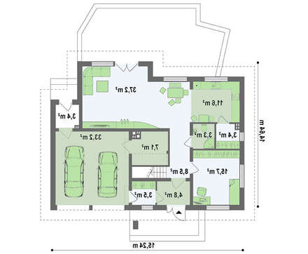 Проект содержит три раздела – Архитектурный, Конструктивный и Инженерный: водоснабжение, отопление, вентиляция, канализация, электроснабжение (приобретается за дополнительную плату) + Пояснительная записка.