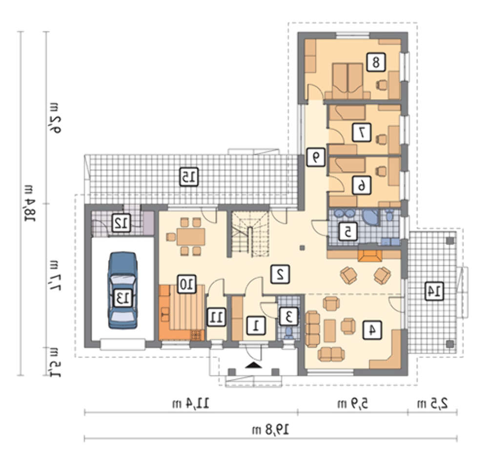 Проект содержит три раздела – Архитектурный, Конструктивный и Инженерный: водоснабжение, отопление, вентиляция, канализация, электроснабжение (приобретается за дополнительную плату) + Пояснительная записка.