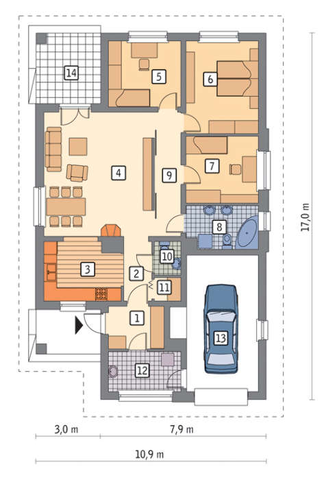• 4M6241 Красивый дом с двумя верандами и гаражом на 1 авто