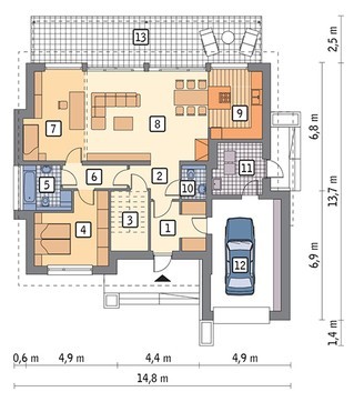 Проект содержит три раздела – Архитектурный, Конструктивный и Инженерный: водоснабжение, отопление, вентиляция, канализация, электроснабжение (приобретается за дополнительную плату) + Пояснительная записка.