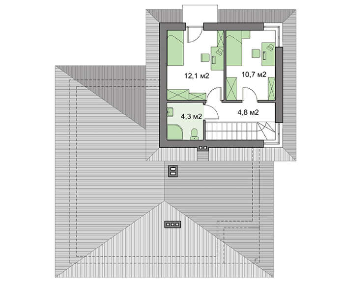 Проект содержит три раздела – АрхитектурныйКонструктивный и Инженерный: водоснабжение, отопление, вентиляция, канализация, электроснабжение (приобретается за дополнительную плату) + Пояснительная записка.