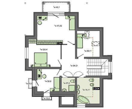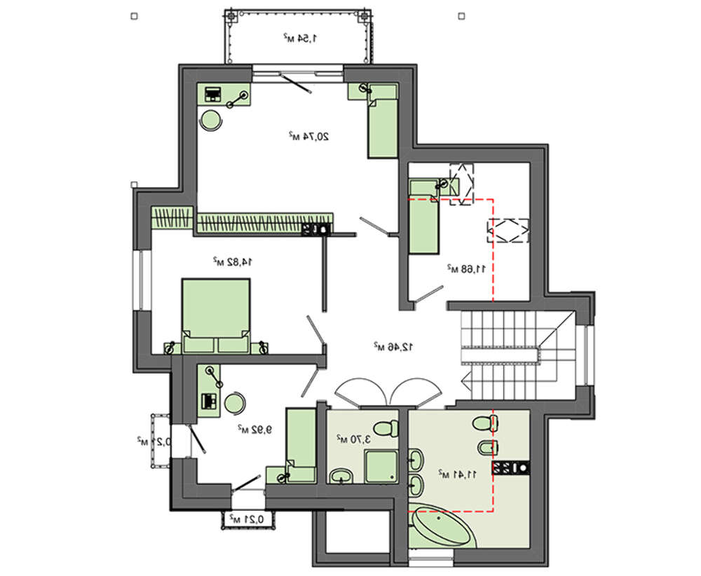Проект содержит три раздела – Архитектурный, Конструктивный и Инженерный: водоснабжение, отопление, вентиляция, канализация, электроснабжение (приобретается за дополнительную плату) + Пояснительная записка.