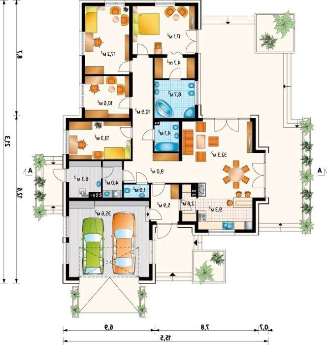 • 4M3765a Красивый одноэтажный дом со встроенным гаражом для 2 машин