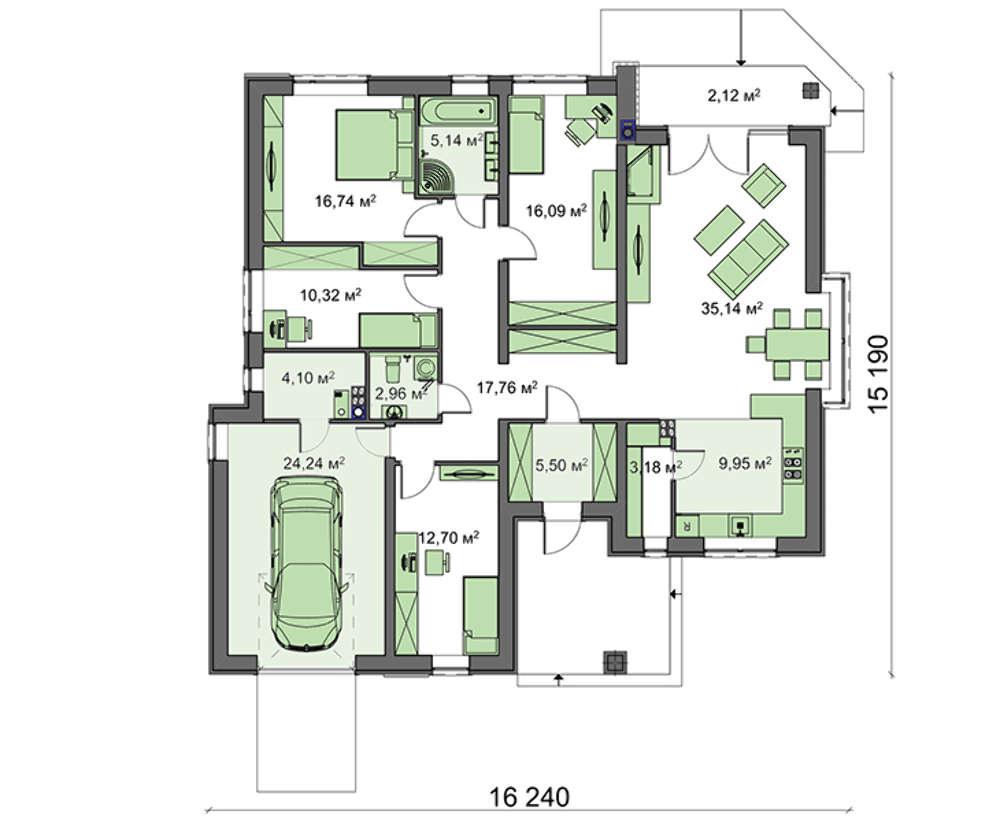 • 4M176 Красивый одноэтажный коттедж с гаражом и 4 уютными спальнями