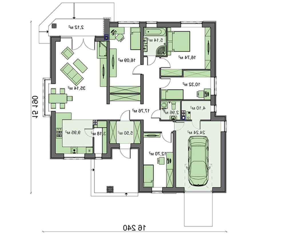 Проект содержит три раздела – Архитектурный, Конструктивный и Инженерный: водоснабжение, отопление, вентиляция, канализация, электроснабжение (приобретается за дополнительную плату) + Пояснительная записка.