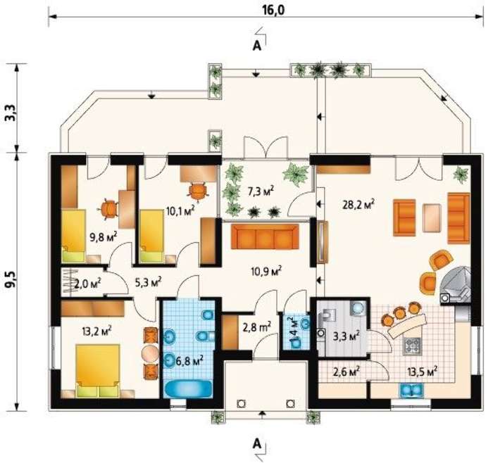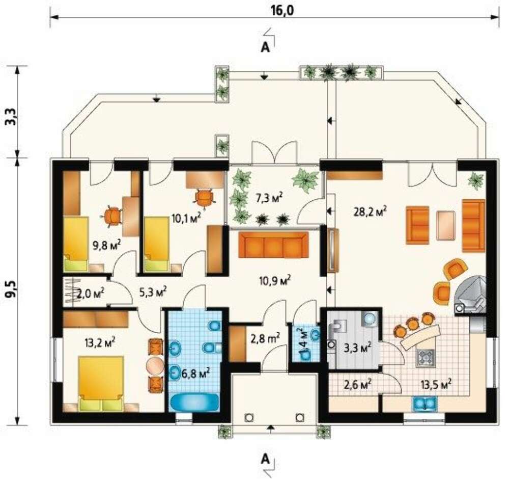 Красивый проект для строительства коттеджа для узкого участка 4M3665b