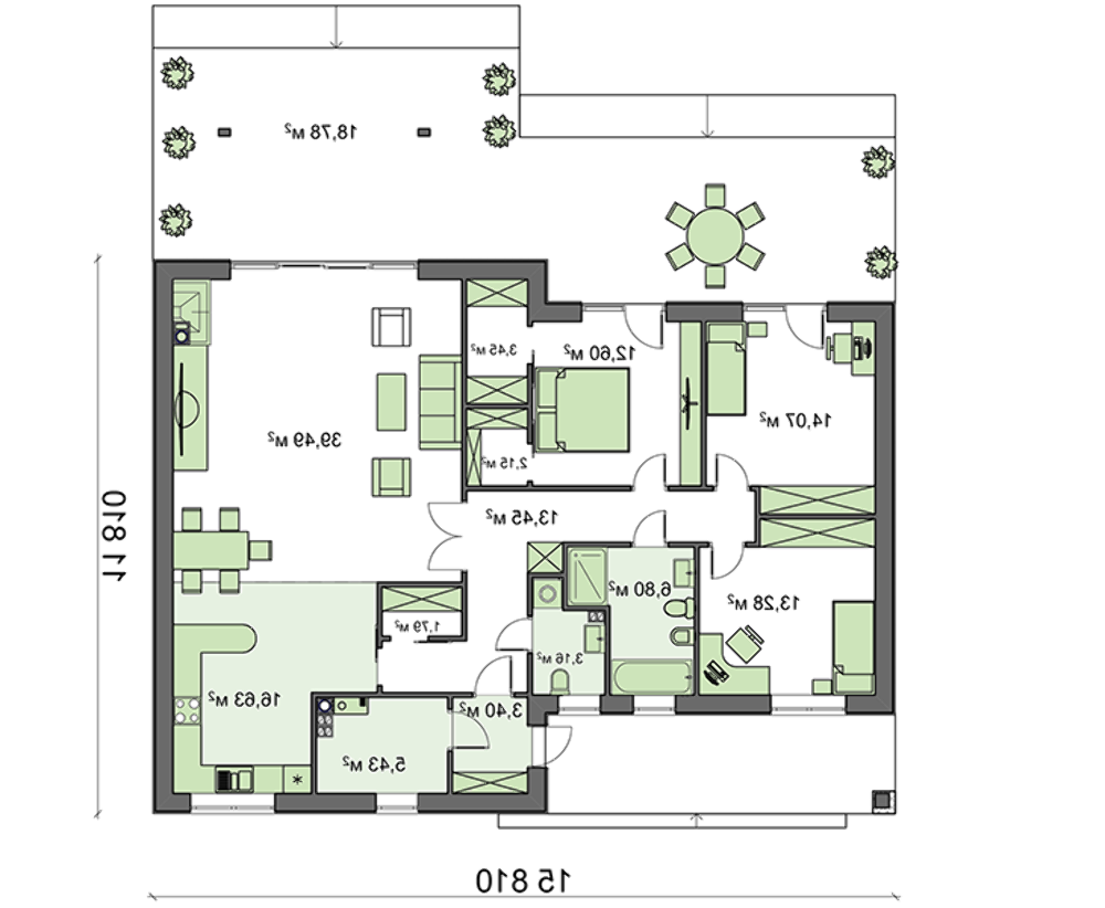 • 4M604 Красивый проект одноэтажного коттеджа с плоской крышей