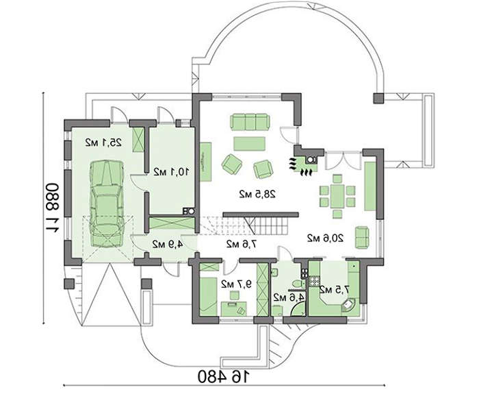 Проект содержит три раздела – Архитектурный, Конструктивный и Инженерный: водоснабжение, отопление, вентиляция, канализация, электроснабжение (приобретается за дополнительную плату) + Пояснительная записка.