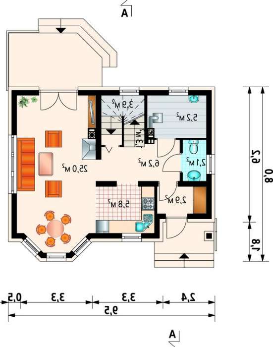 Мансардный дом с эркером 8м на 10м 4M3304v