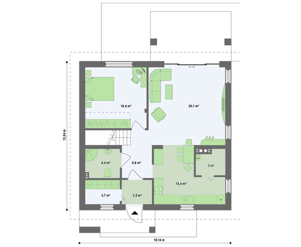 Проект содержит три раздела – АрхитектурныйКонструктивный и Инженерный: водоснабжение, отопление, вентиляция, канализация, электроснабжение (приобретается за дополнительную плату) + Пояснительная записка.