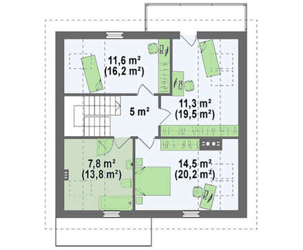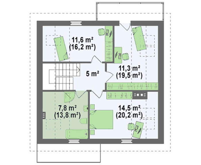 • 4M216 Мансардный проект дома с двухскатной крышей