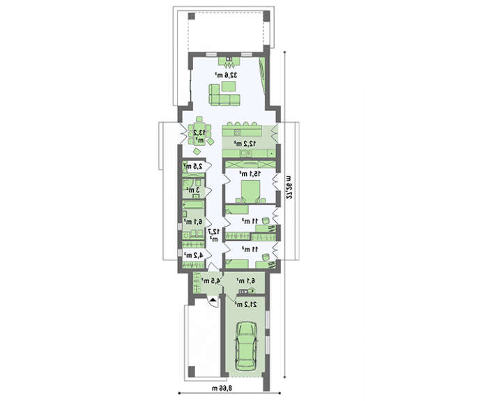 Проект содержит три раздела – Архитектурный, Конструктивный и Инженерный: водоснабжение, отопление, вентиляция, канализация, электроснабжение (приобретается за дополнительную плату) + Пояснительная записка.