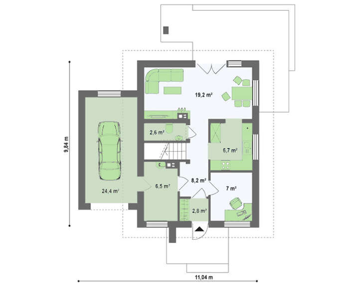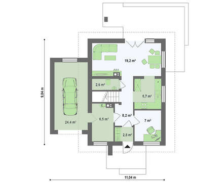 Небольшой дом с мансардой и пристроенным гаражом 4M116G