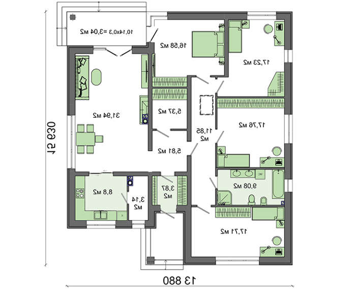 Проект содержит три раздела – Архитектурный, Конструктивный и Инженерный: водоснабжение, отопление, вентиляция, канализация, электроснабжение (приобретается за дополнительную плату) + Пояснительная записка.