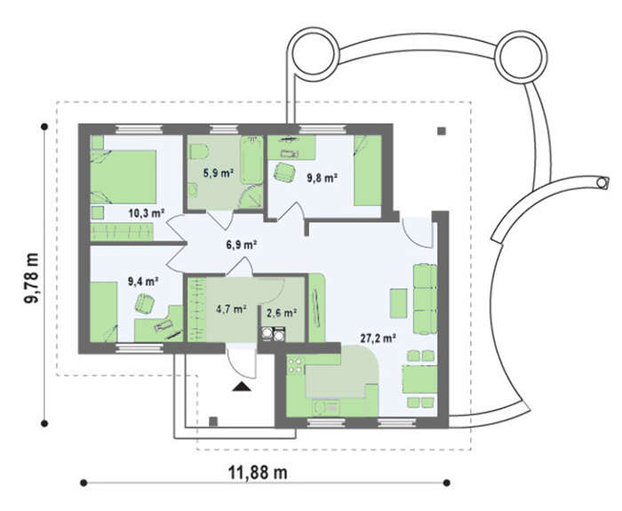 | Высота дома: | 6.09 м |