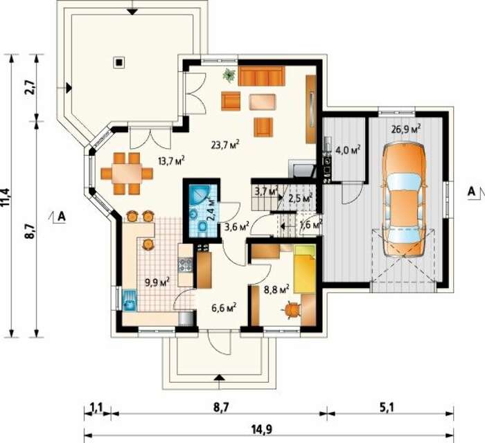 Небольшой особняк с мансардой 11 на 9 площадью более 200 m²