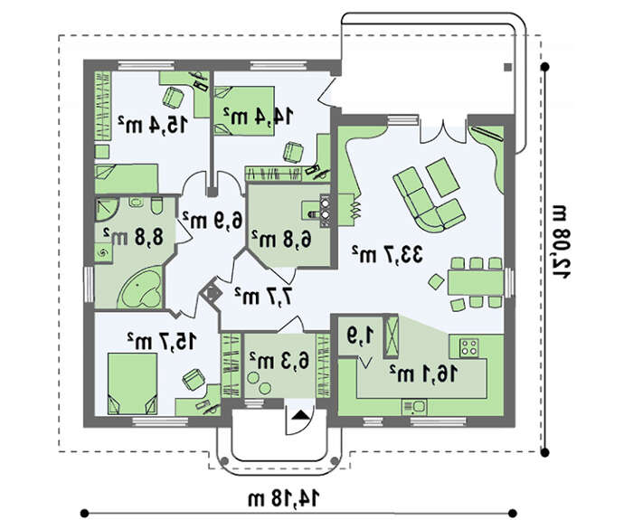 • 4M512g Одноэтажный дом с колоннами по версии 4M512 без встроенного гаража
