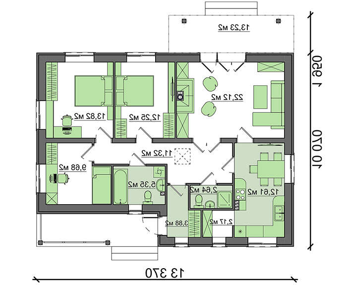 Проект содержит три раздела – Архитектурный, Конструктивный и Инженерный: водоснабжение, отопление, вентиляция, канализация, электроснабжение (приобретается за дополнительную плату) + Пояснительная записка.