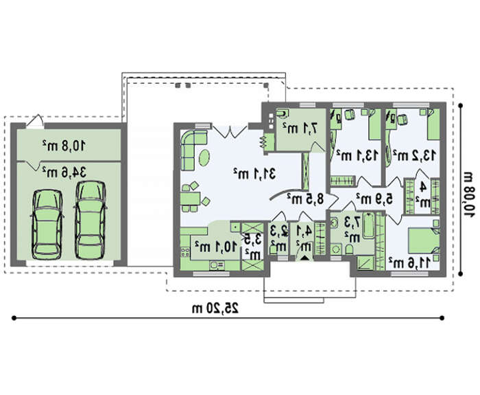 Проект содержит три раздела – Архитектурный, Конструктивный и Инженерный: водоснабжение, отопление, вентиляция, канализация, электроснабжение (приобретается за дополнительную плату) + Пояснительная записка.