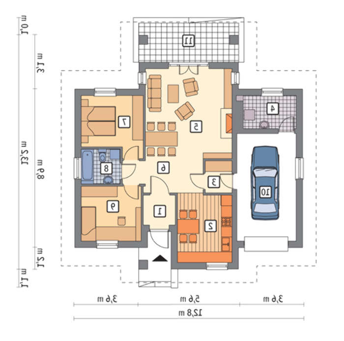 • 4M6229 Одноэтажный особняк на 3 спальни