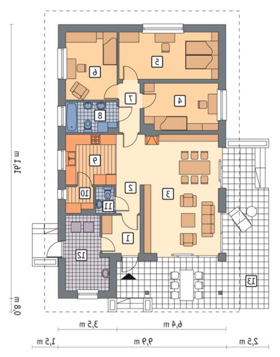 • 4M6154a Одноэтажный особняк на 4 спальни