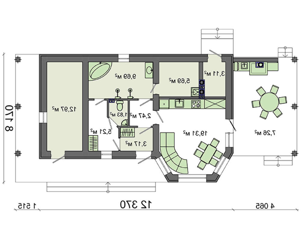Проект содержит три раздела – Архитектурный, Конструктивный и Инженерный: водоснабжение, отопление, вентиляция, канализация, электроснабжение (приобретается за дополнительную плату) + Пояснительная записка.