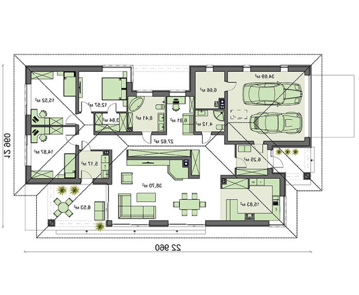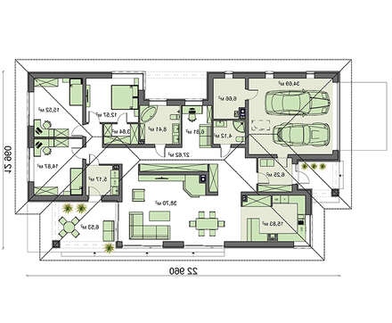• 4M755 Одноэтажный просторный дом с гаражом на 2 авто