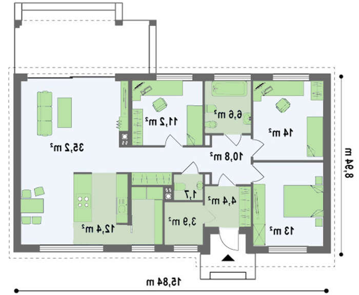 Сегодня, одноэтажные домики такие же востребованные, как и раньше. Несмотря на то, что выбор большинства останавливается на домах в два-три этажа или с мансардами, дома в один этаж тоже нужны. Ведь не всем людям большие дома по карману, а кому-то в них просто нет никакой надобности. Пожилым людям в тягость ходить по лестницам, а молодым семьям с маленькими детками лестница в доме – это дополнительные хлопоты. Домик 4М618 идеально подойдет тем, кому этажность не по душе.