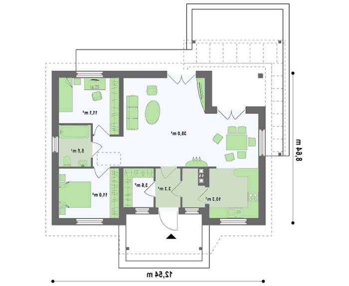 • 4M2335 Небольшой одноэтажный дом с 2-я спальнями