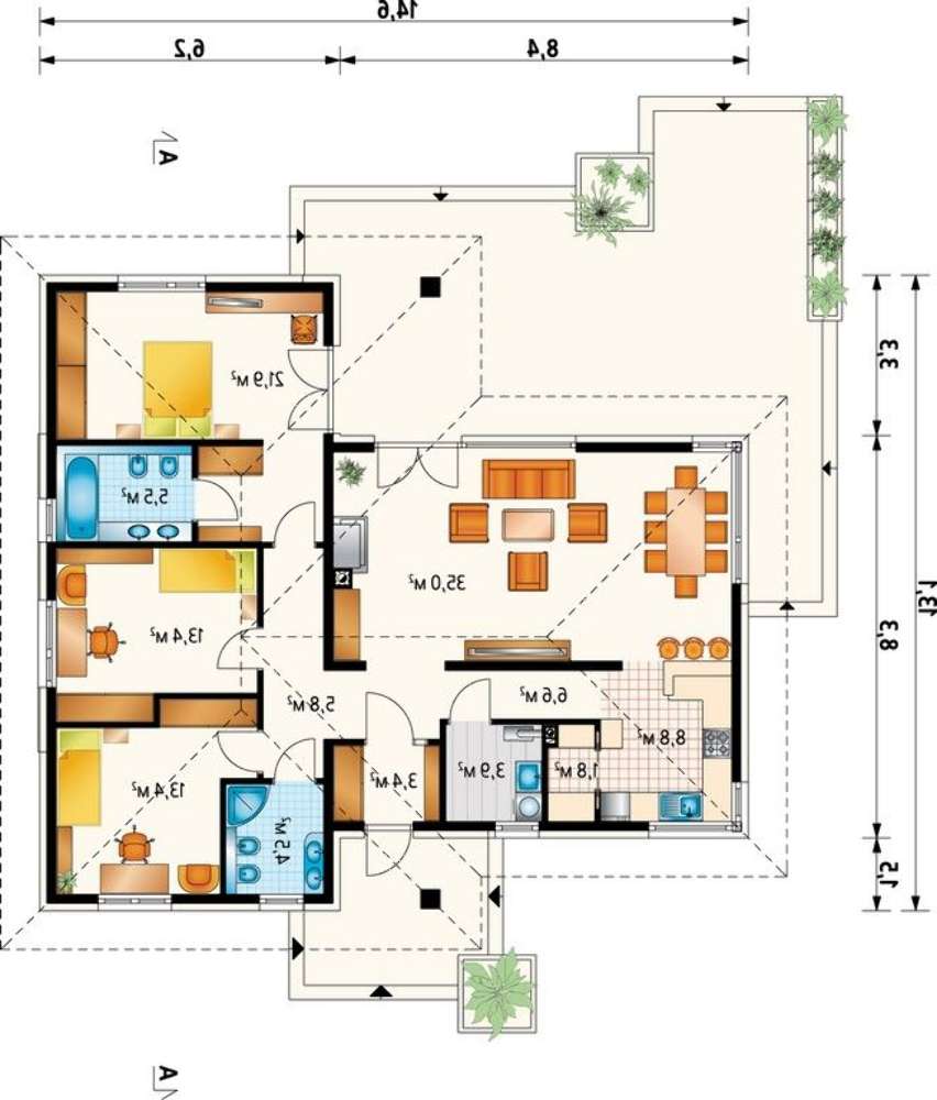 • 4M3317 Оригинальный 1 этажный дом Т-образной формы