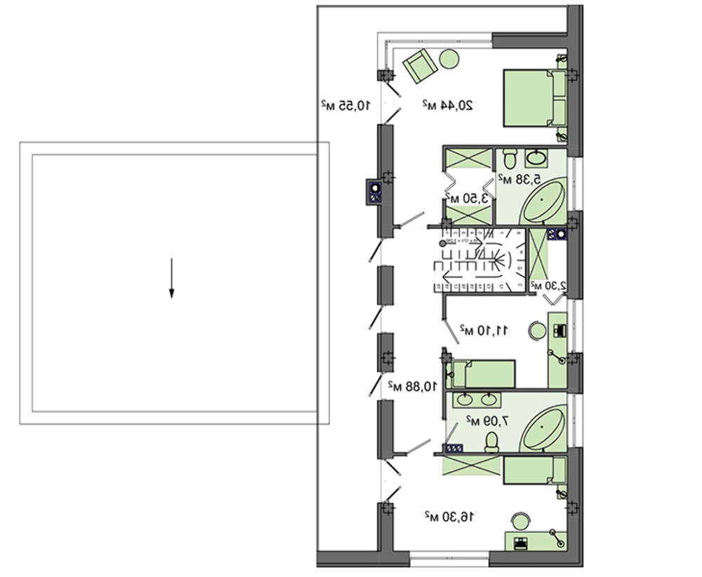 Проект содержит три раздела – Архитектурный, Конструктивный и Инженерный: водоснабжение, отопление, вентиляция, канализация, электроснабжение (приобретается за дополнительную плату) + Пояснительная записка.