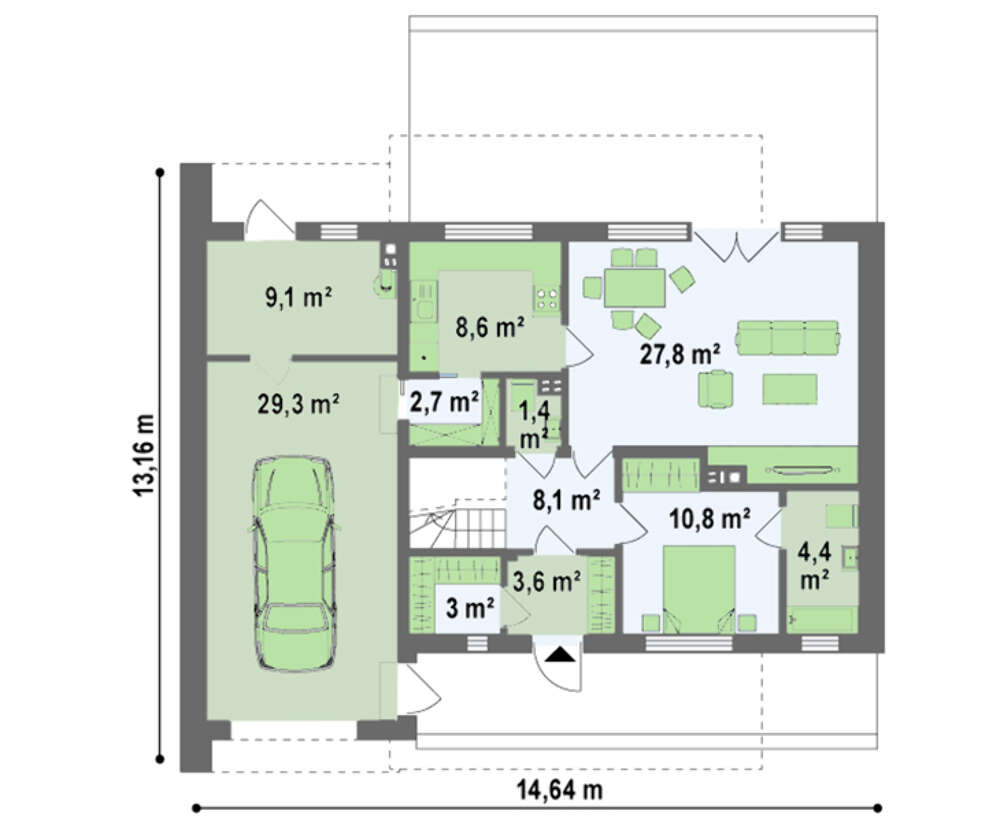 Проект содержит три раздела – АрхитектурныйКонструктивный и Инженерный: водоснабжение, отопление, вентиляция, канализация, электроснабжение (приобретается за дополнительную плату) + Пояснительная записка.