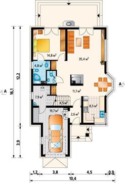 Оригинальный проект дома с гаражом для 1 машины 4M3758e