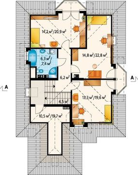 Второй этаж дает возможность хорошо расслабиться. Для этого имеются три спальни, несмотря на различия в планировке, все они компактные и большие по размерам. Полноценному отдыху способствуют балконы, выход на которые есть из каждого помещения.
