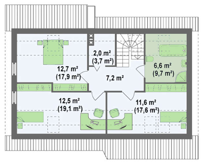 Проект содержит три раздела – Архитектурный, Конструктивный и Инженерный: водоснабжение, отопление, вентиляция, канализация, электроснабжение (приобретается за дополнительную плату) + Пояснительная записка.