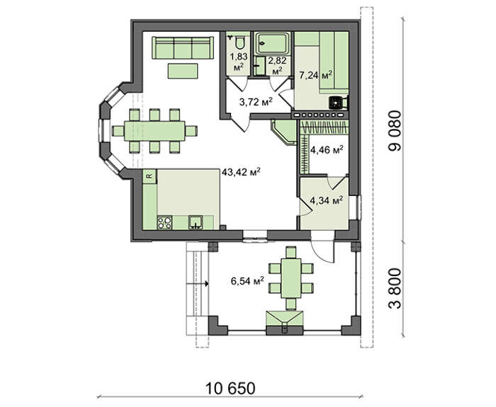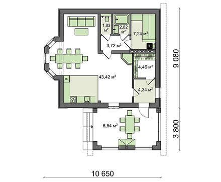 Проект содержит три раздела – Архитектурный, Конструктивный и Инженерный: водоснабжение, отопление, вентиляция, канализация, электроснабжение (приобретается за дополнительную плату) + Пояснительная записка.