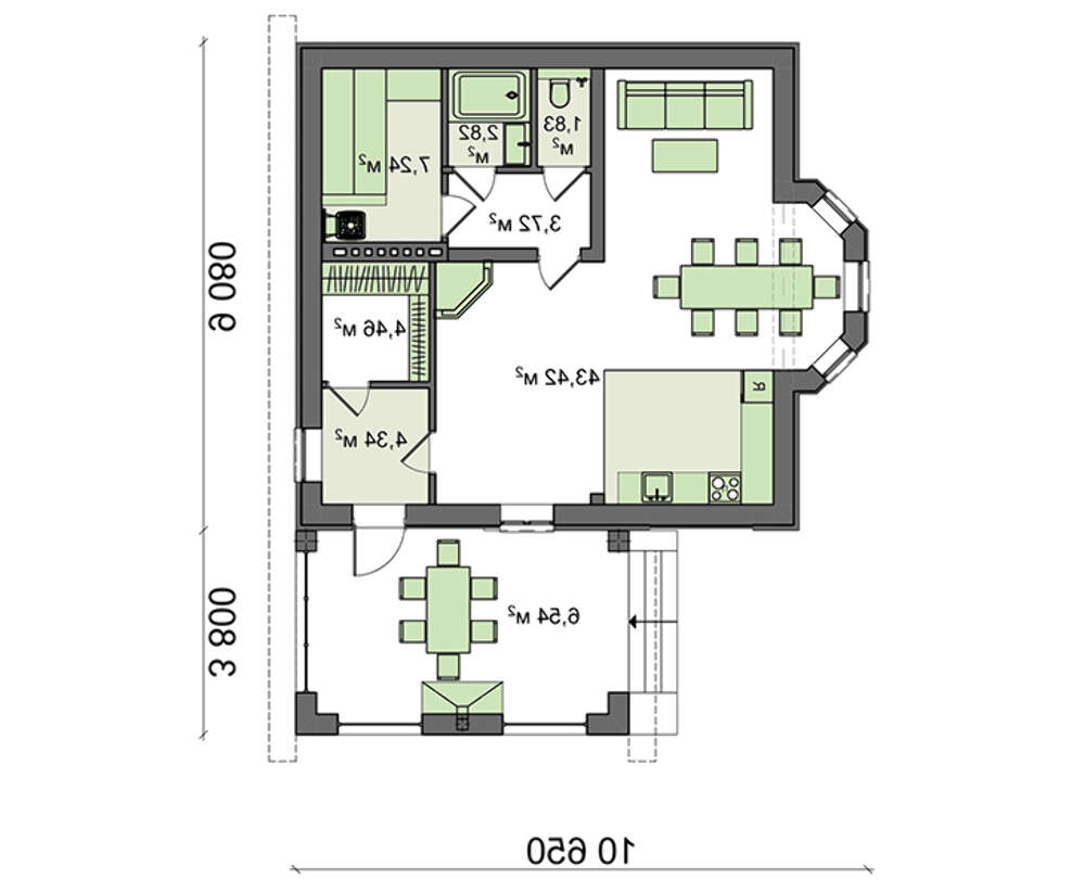 Проект содержит три раздела – Архитектурный, Конструктивный и Инженерный: водоснабжение, отопление, вентиляция, канализация, электроснабжение (приобретается за дополнительную плату) + Пояснительная записка.