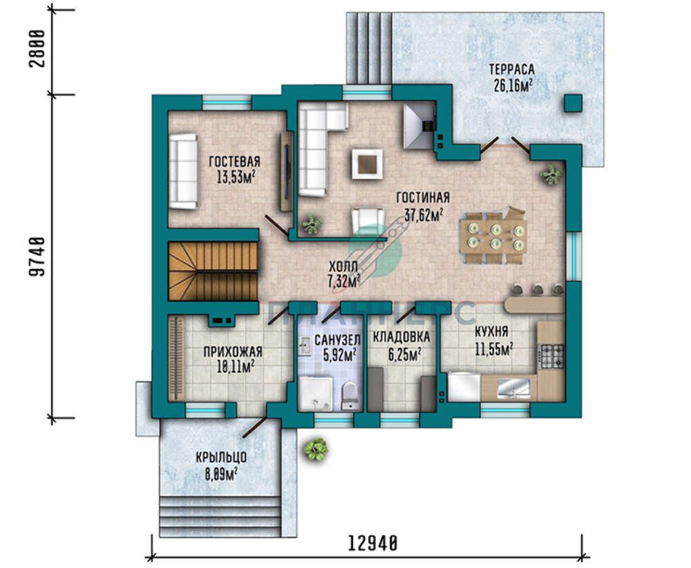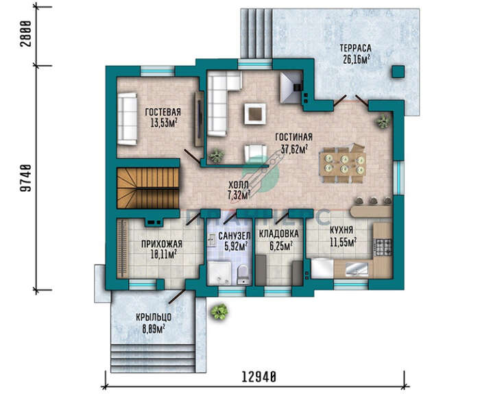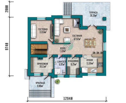 • 4M1412 План коттеджа площадью 290 кв.м с цокольным этажом