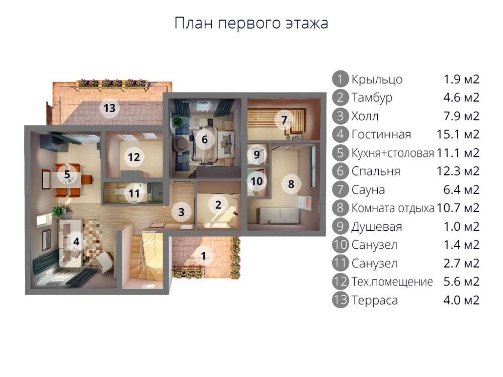 План шикарного загородного дома с просторной зоной отдыха 4M5111