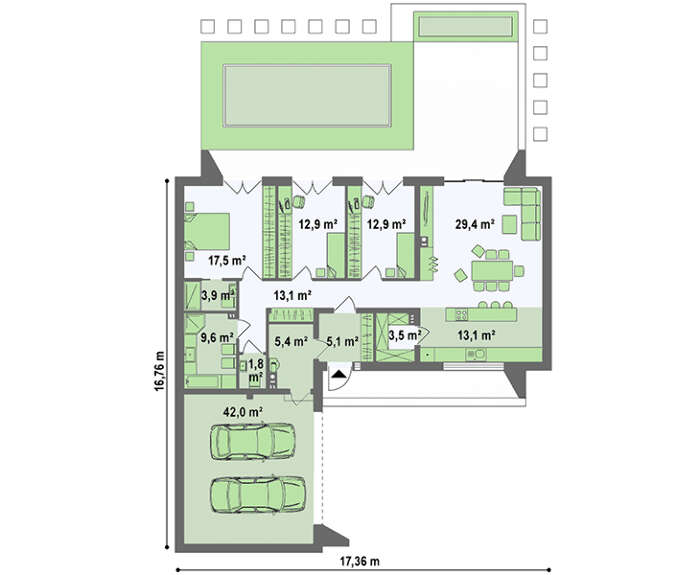 | Минимальный размер участка(ширина): | 23.36 м |