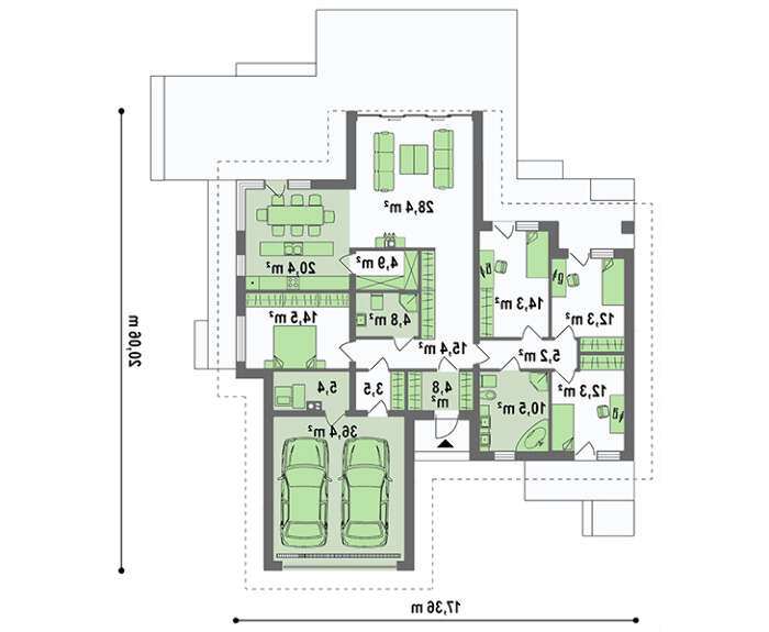 План современного коттеджа площадью 246 кв. м с просторным гаражом на две машины 4M7109