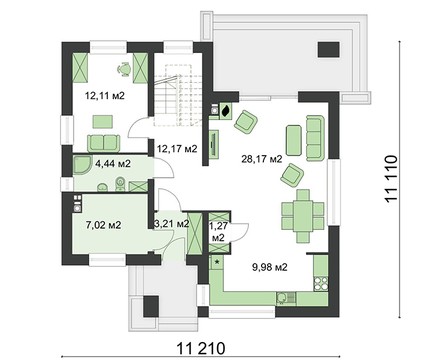 Проект содержит три раздела – Архитектурный, Конструктивный и Инженерный: водоснабжение, отопление, вентиляция, канализация, электроснабжение (приобретается за дополнительную плату) + Пояснительная записка.