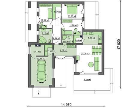 • 4M7046 План строительства представительного коттеджа площадью 142 кв.м и гаражом для 1 авто
