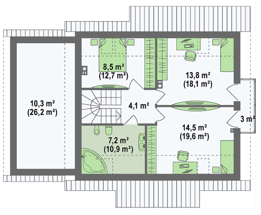 | Площадь крыши: | 204.96 м2 |