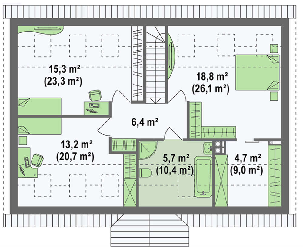 Проект содержит три раздела – Архитектурный, Конструктивный и Инженерный: водоснабжение, отопление, вентиляция, канализация, электроснабжение (приобретается за дополнительную плату) + Пояснительная записка.