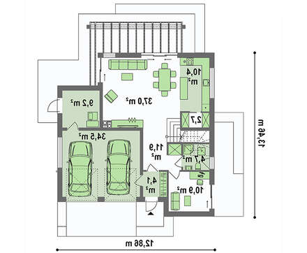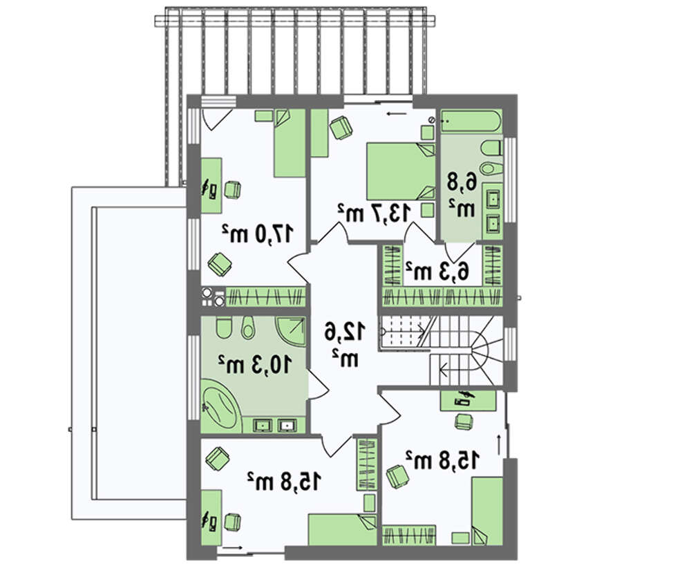 • 4M643 Планировка коттеджа на 220 кв. м с просторной жилой зоной на втором этаже