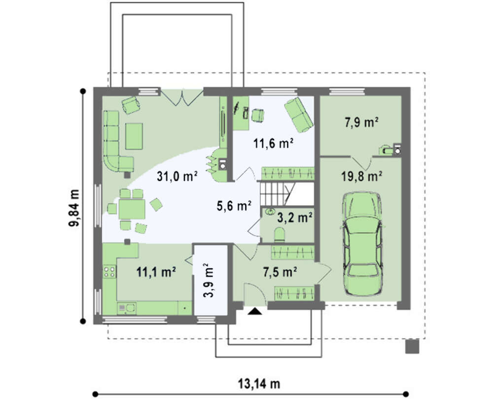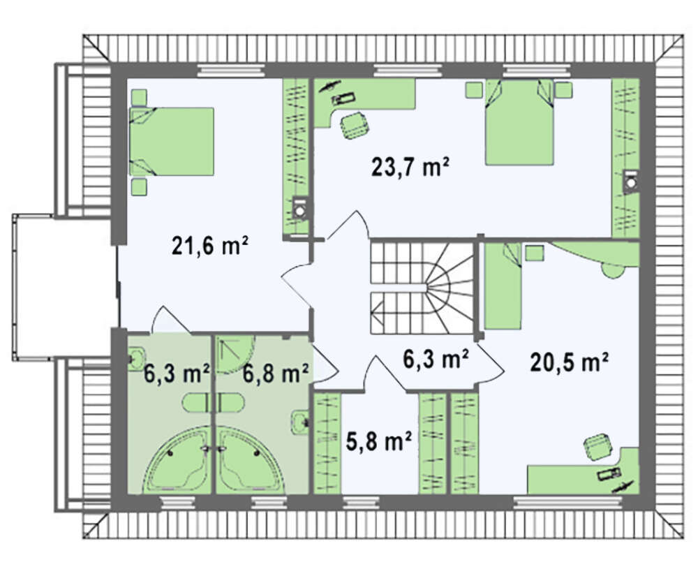 • 4M636k Популярный проект коттеджа 4M636, только с кирпичным фасадом
