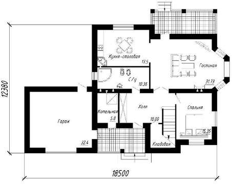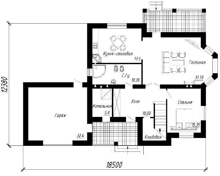 Проект содержит три раздела – АрхитектурныйКонструктивный и Инженерный: водоснабжение, отопление, вентиляция, канализация, электроснабжение (приобретается за дополнительную плату) + Пояснительная записка.